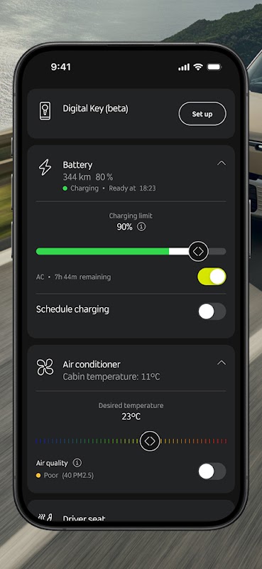 Aplikacja Hello smart wyświetla szczegółowe informacje o pojeździe, zapewnia zdalne sterowanie, wykonuje wstępne kondycjonowanie, uzyskuje dostęp do szczegółów dotyczących akumulatora i ładowania oraz szczegółowo eksploruje pobliskie stacje ładowania.