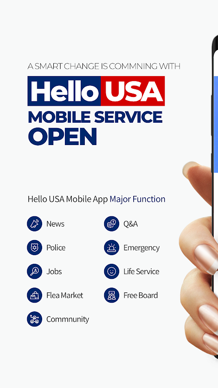 Hello USA świadczy usługi poprawiające jakość życia mieszkańców USA, takie jak wygoda życia, sytuacja awaryjna, życie, QnA i komunikacja.