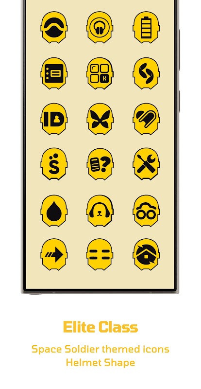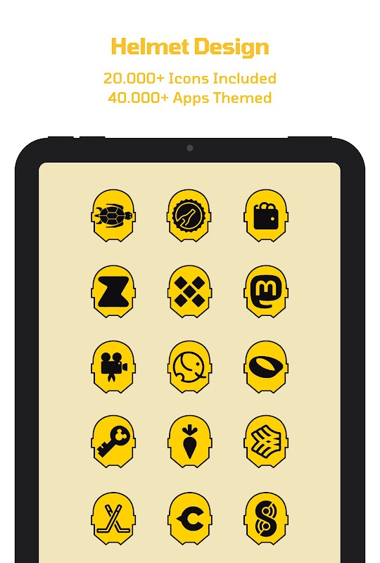 Ten pakiet ikon zawiera żółty hełm z czarnym konturem, który integruje specjalne czarne glify dla wszystkich twoich ikon, tworząc ekskluzywny, elitarny styl!