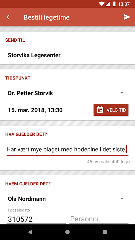 Powołanie zamówienie, recepty lub wykonać inne zapytania do lekarza rodzinnego. Nie można znaleźć gabinecie lekarskim na liście, skontaktuj się z biurem lekarza lub powiadomić poprzez http://www.helserespons.no