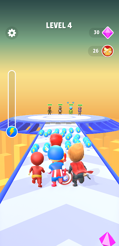 Zbieraj wyposażenie dla każdego bohatera podczas biegu i dołącz ich do swojej drużyny. Stwórz drużynę marzeń ze swoich ulubionych superbohaterów. Trenuj, wzmacniaj swoich bohaterów i poprowadź ich do ostatecznej bitwy. Na końcu pokonaj swojego wroga, zostań najsilniejszym mścicielem i uratuj świat!
