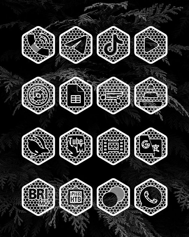 Hexanet White to pakiet ikon / zmieniacz ikon inspirowany strukturami sieci. Jest to sześciokątna wersja pakietu Net White Icon Pack. jest idealnie biały, przezroczysty i elegancki o strukturze siateczki. Te białe ikony doskonale nadają się do ciemnej tapety lub naturalnej scenerii. Nie polecam używania tego pakietu ikon z białą lub jasną tapetą, ponieważ powoduje to, że struktura sieci na tej ikonie nie jest doskonale widoczna.