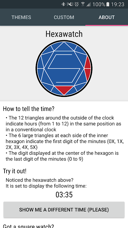 • W 12 trójkąty wokół zewnętrznej zegara wskazują godzin (od 1 do 12), w tej samej pozycji, jak w konwencjonalnym zegarem