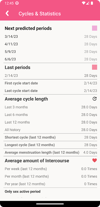 Keep track of your menstrual cycles with Period Calendar. It tracks your periods, cycles, ovulation, and the chance of conception. Period tracker helps both women looking to conceive and those trying to birth control.
