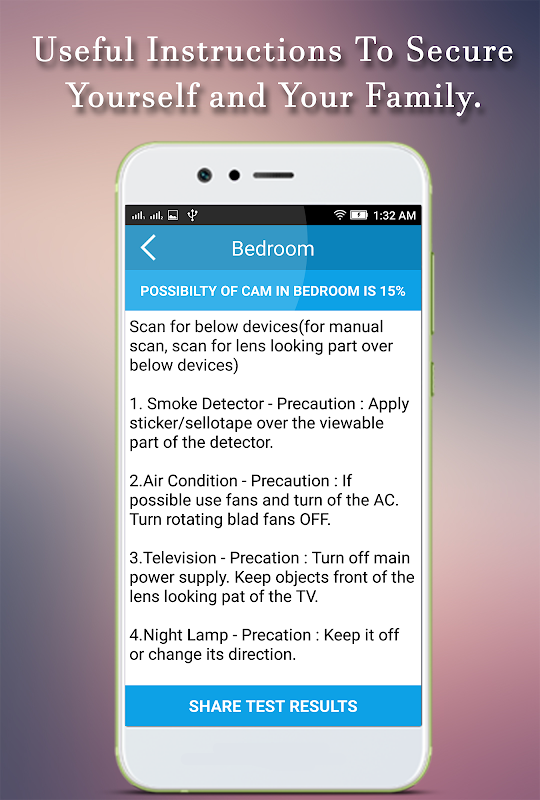 Open application and Move your phone close to any suspected areas like Bedroom, shower, window box, focal point looking the part or changing room reflect. This free Hidden Camera Detector - Spy Locator 2018 has one more functionality which is recognition of infrared camera with the help of infrared lights. Just open the infrared locator and sweep for white light that shows up on screen and not noticeable by naked eye. Such white light demonstrates infrared light. It could be an infrared camera.