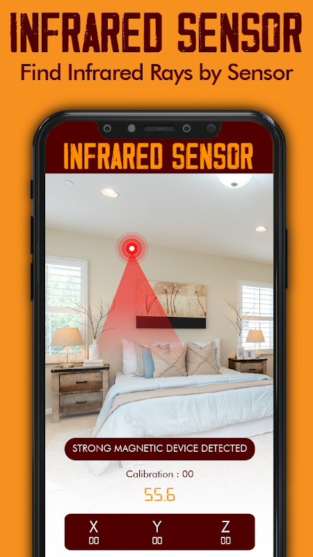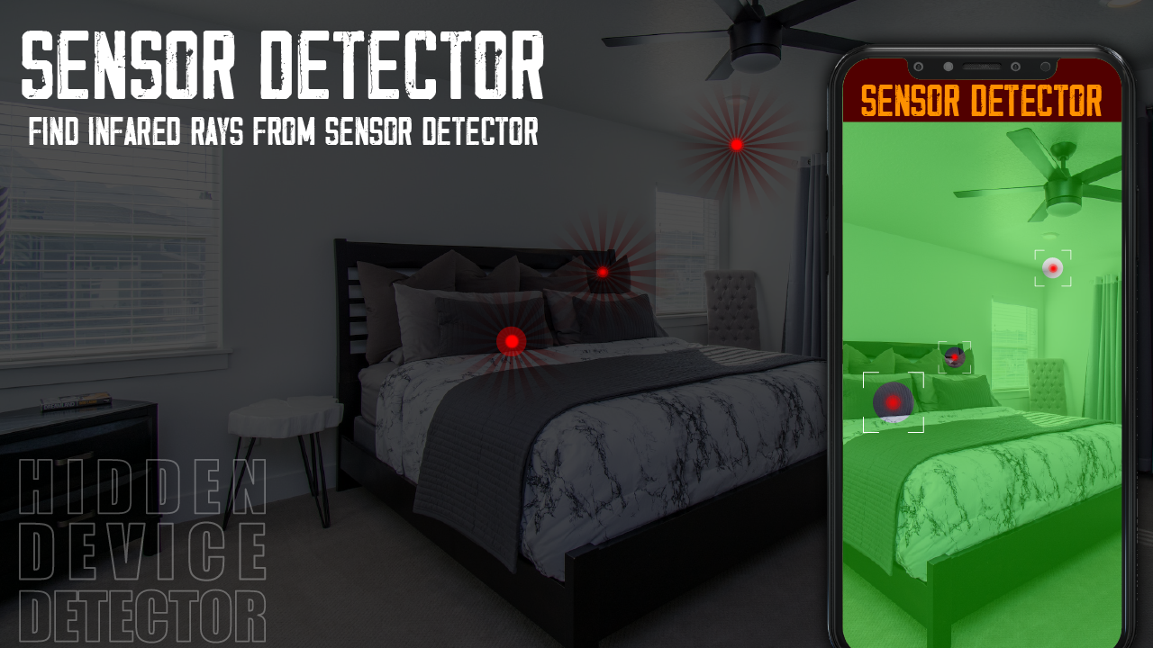 Szukasz wykrywacza ukrytych kamer? Jeśli tak, mamy dla Ciebie niespodziankę. Dzięki tej aplikacji możesz znaleźć dowolną ukrytą kamerę lub urządzenie. ta aplikacja do wykrywania ukrytych kamer na Androida jest prosta w użyciu, wystarczy zabrać tę aplikację na urządzenie, a ta aplikacja przeskanuje automatycznie i znajdziesz dowolne urządzenie lub kamerę w pobliżu. a ta aplikacja do wyszukiwania ukrytych kamer wyda sygnał dźwiękowy i poinformuje Cię, ile wartości pola magnetycznego jest w pobliżu. Dzięki tej kamerze wykrywającej ukryte urządzenia możesz zobaczyć promienie podczerwone, po prostu skanując całą lokalizację. Jeśli są jakieś promienie podczerwone lub ukryta kamera, ta aplikacja pomoże Ci znaleźć to urządzenie.