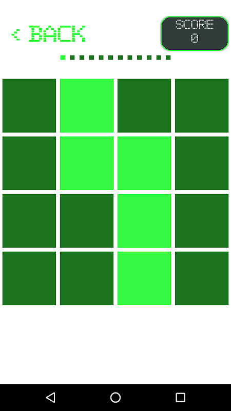 -A pattern will appear on the screen for a moment, remember the tiles lights in green color appeared in the matrix and then repeat the correct tiles as fast as you can.
