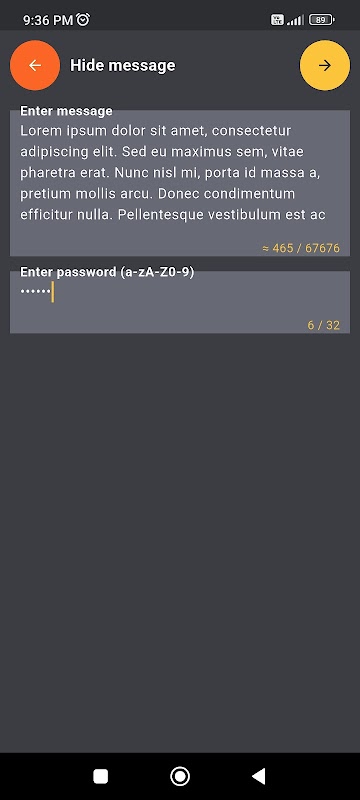 3- Wprowadź to samo hasło, które zostało użyte podczas ukrywania wiadomości.