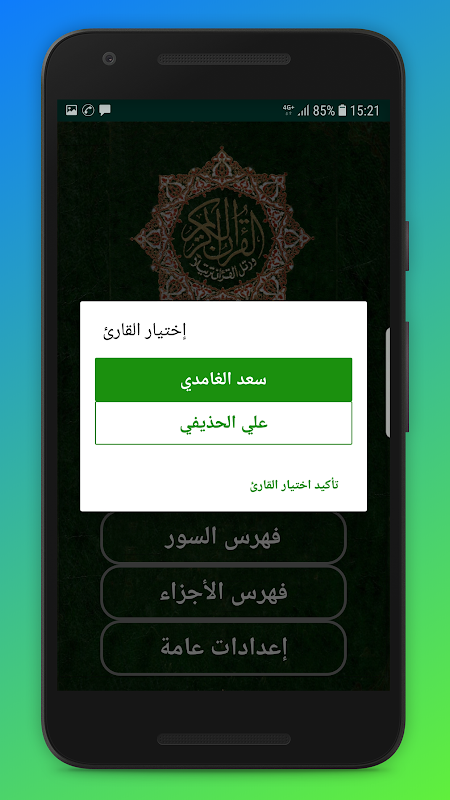 Aplikacja przedstawia Koran według narracji Hafsa z Asim i Warsh autorstwa Nafi