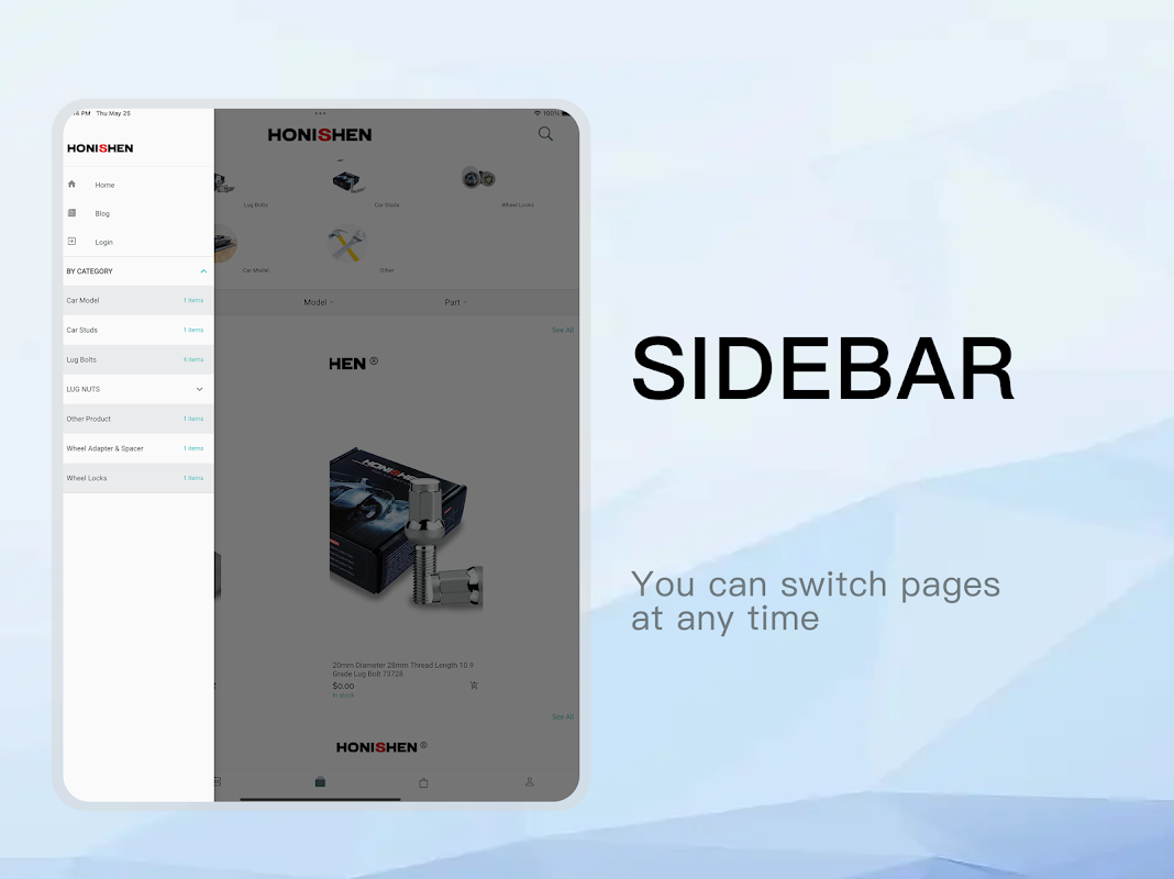 Honishen to zróżnicowana aplikacja z akcesoriami samochodowymi