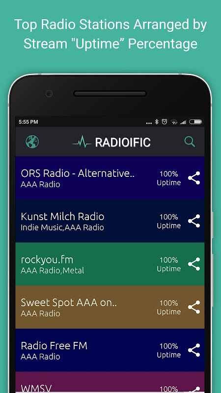*Radio Stations aggregated from only the best sources arranged by “Station’s Up-Time” percentage.