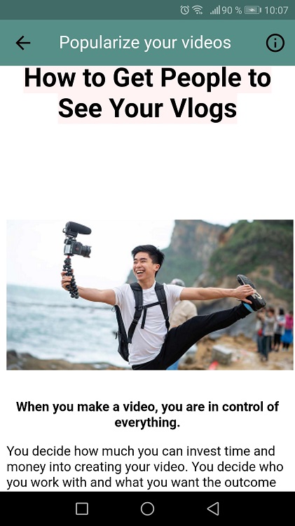Droga do zostania vlogerem może wydawać się długa — dlatego nasza aplikacja zapewnia Ci całą niezbędną wiedzę, niezbędną do rozwijania umiejętności, niezależnie od tego, czy jesteś początkującym, czy aspirującym twórcą, gotowym do uruchomienia profesjonalnego kanału na YouTube.