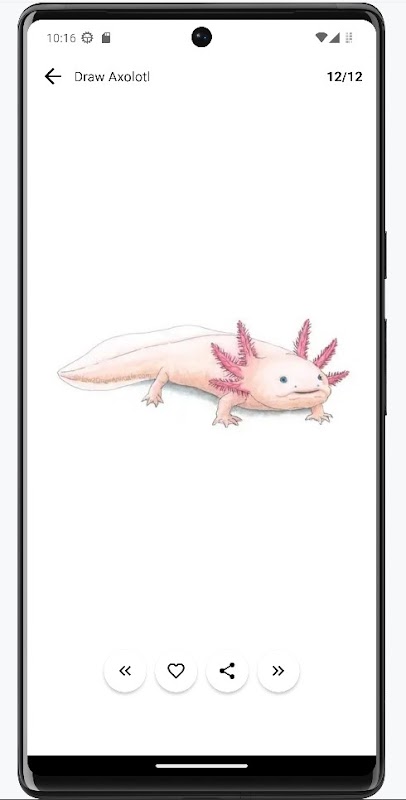 Interaktywna zabawa: przetestuj swoje umiejętności dzięki interaktywnym ćwiczeniom rysunkowym bezpośrednio w aplikacji. Ćwicz i udoskonalaj swoje techniki, obserwując, jak Twoje rysunki aksolotla ewoluują w wodne arcydzieła!