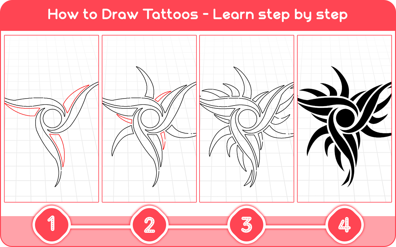 How to draw tattoos step by step offline provides you with a best handpicked collection of tattoo drawing tutorials carefully designed to take you from beginning doodler to expert tattoo designer & then to professional tattoo maker. How to draw tattoos step by step easy is an innovative way to learn the basics of drawing a tattoo