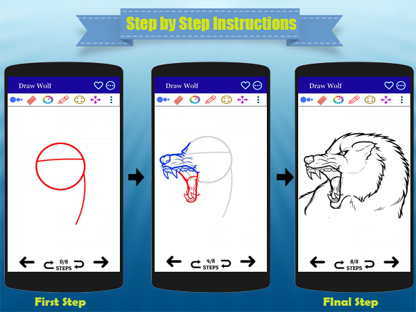 Więc na co czekasz? Pobierz i zainstaluj tę aplikację do rysowania, aby nauczyć się rysować wilka krok po kroku. Po pobraniu tych samouczków rysunkowych będziesz mógł szybko i w łatwy sposób narysować wilka.