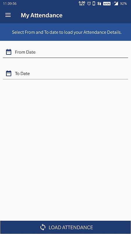 Użytkownik może przeglądać swoją obecność na podstawie wybranego zakresu dat.