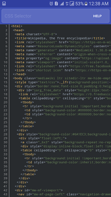 Inspect the source code of HTML,XML,CSS and Java Script of any web page. Html Source code viwer is an app which used for inspecting the code of web page and manipulate the code by CSS selector.