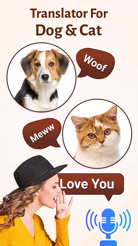 Tłumacz z człowieka na kota lub psa - przetłumacz prawdziwego psa na człowieka za pomocą tego tłumacza z głosu człowieka na psa.