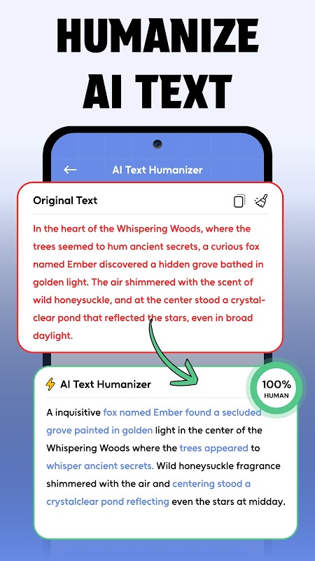 Niewykrywalna aplikacja do humanizacji tekstu AI, która natychmiast przepisuje i humanizuje tekst AI.