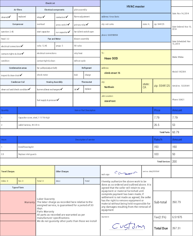 - professional looking HVAC invoices/work order forms.
