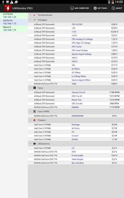 - PC z systemem Windows: instalacja HWMonitor PRO dla Windows (http://www.cpuid.com/softwares/hwmonitor-pro.html) w komputerze, który chcesz śledzić, a następnie przejść do trybu słuchania. Zwróć uwagę na nazwę komputera i adresu IP.