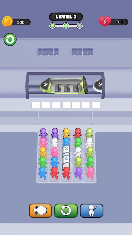 🚀Witamy w grze Train Jam Puzzle Game: Train Jam 3D: Color Sort Game to zabawna gra typu Stickman Match Puzzle Game. Gracze sortują kolorowych pasażerów w jadącym pociągu. Gra Hyperloop Train Jam obejmuje elementy strategii i szybkiego myślenia. Ta gra Color Sorting Game rzuca graczowi wyzwanie utrzymania porządku w pociągu i sortowania pasażerów na różnych poziomach i w różnych wyzwaniach.