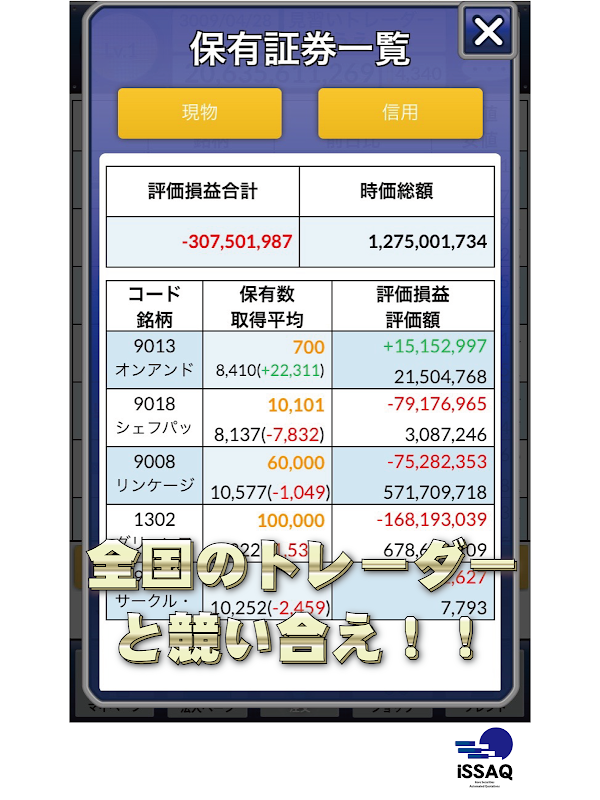 ・このアプリはあくまでゲームです。現実の株とはかけ離れた値動きをしますので、現実の投資への判断材料等に利用しないようお願いします。