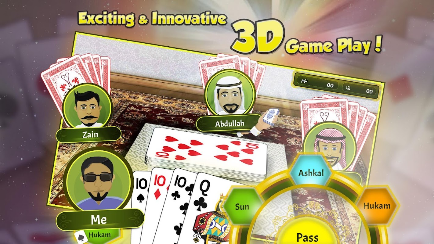 This uniquely styled version, with its natural card layout, engages the player like no other card game. Combined with the strategy and fun of card games, iBaloot 3D is a game that draws your attention and keeps you playing for hours.