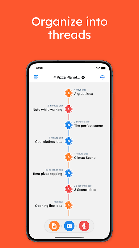 Idea Threads, zaprojektowana z myślą o szybkim zapisywaniu pomysłów w podróży, pozwala Ci wpisać pomysł, wypowiedzieć go lub zrobić zdjęcie. Aplikacja porządkuje Twoje pomysły w wątki (kategorie lub projekty), aby ułatwić ich późniejsze odnalezienie. Możesz wyszukiwać, filtrować według typu (audio, obraz lub tekst), przybliżać i oddalać, aby zobaczyć wiele lub niewiele naraz.