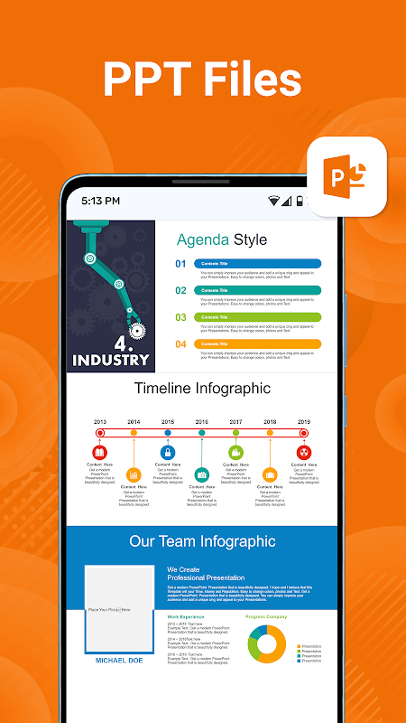 - Różnorodny dostęp do plików: otwieraj pliki w dowolnym formacie, w tym PDF, DOC, DOCX, XLS, XLSX, PPT i TXT, bezpośrednio z urządzenia mobilnego. To jak mieć przenośne biuro w kieszeni!