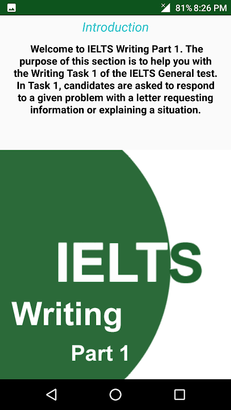 Nie ma szybki sposób do osiągnięcia tego celu, ale ta aplikacja zapewnia pewne ogólne wytyczne dotyczące tego, co jest wymagane, aby uzyskać dobry zespół IELTS w formie pisemnej (część 1) moduł.