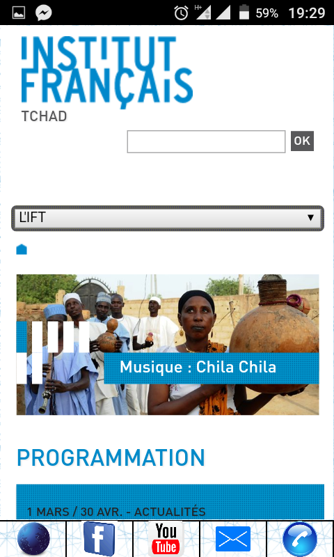 - Un titre de chaque artiste programmé à l'Institut Français du Tchad, totalement off-Line. Vous pouvez écouter la musique des artistes que vous aimez ou que vous ne connaissez pas encore.