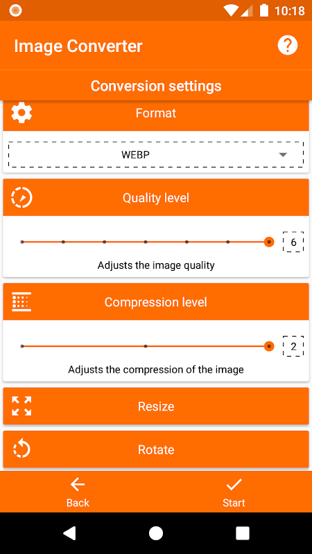 Preview images before conversion, as well as image file format, compression settings and dimensions for image resizing.
