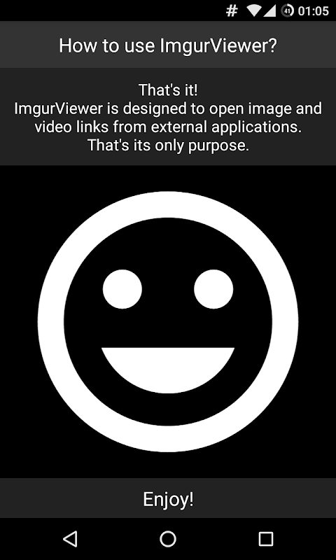 ImgurViewer jako samodzielna aplikacja nic nie robi, więc nie oczekuj niczego podczas otwierania aplikacji. Musi być używany w połączeniu z innymi aplikacjami zewnętrznymi jako przeglądarka internetowa, reddit to zabawa, newsblur. Zostało to zrobione dla mojego osobistego użytku (programisty) i przesłane do sklepu Play, aby udostępnić je światu. Mam nadzieję, że ktoś też uzna to za przydatne.