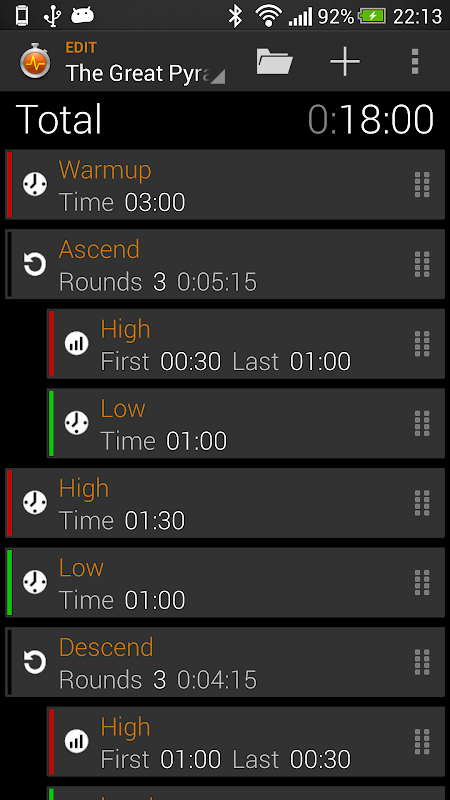 Budowanie wszystkie swoje plany treningowe: Narysuj dowolny rodzaj synchronizacji przy użyciu trybu zaawansowanego. Program dowolną liczbę zbiorów i timerów, gniazdo ustawia wewnątrz siebie za wielkich treningów, użyć zmiennej liczniki dla zestawów piramidy.