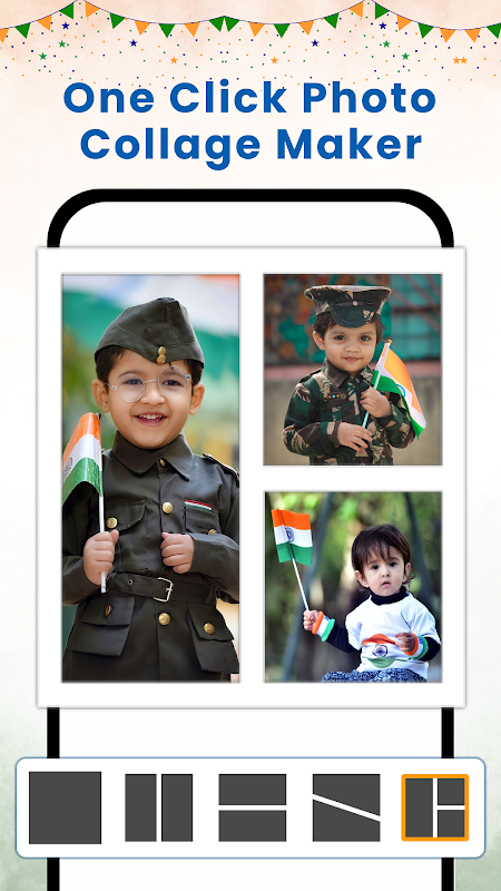 Wesołego Dnia Niepodległości dla wszystkich mieszkańców Indii. Ta aplikacja pozwala łatwo dodać zdjęcia z ramkami i kolażami.