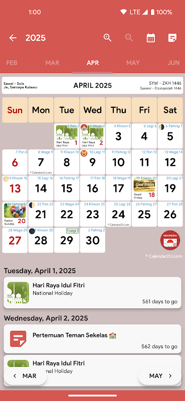 Calendar2U: święta indonezyjskie, daty Jawy i Hidżry, przypomnienia. Zaplanuj swoje dni!