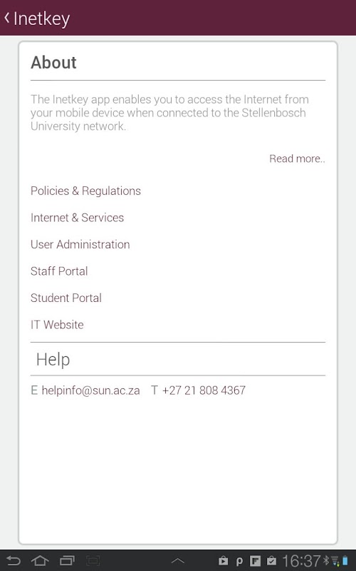 Inetkey enables access to Internet from Stellenbosch University WiFi networks