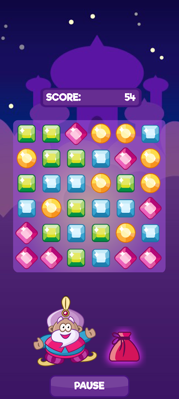 Dopasuj trzy lub więcej takich samych klejnotów w rzędzie, aby napełnić swoją torbę.