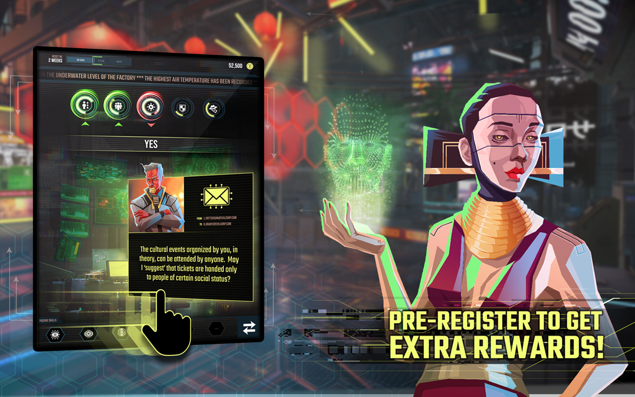 Świat jest w Twoich rękach. Wybierz właściwą strategię i podejmuj właściwe decyzje. Możliwości jest wiele – każda z nich ma określony wpływ na życie obywateli. Upewnij się, że „megakorporacje” utrzymają wpływ na funkcjonowanie świata i życie obywateli. Korporacje zajmują się określonymi dziedzinami i chcą zarobić jak najwyższy zysk. Nie dbają o swoich klientów ani pracowników.