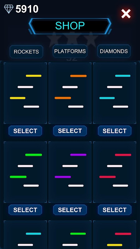 Tap button to release rockets and destroy all the platforms that comes down from space but be careful don't spam rockets on space or let platforms reach bottom because you will Lose.