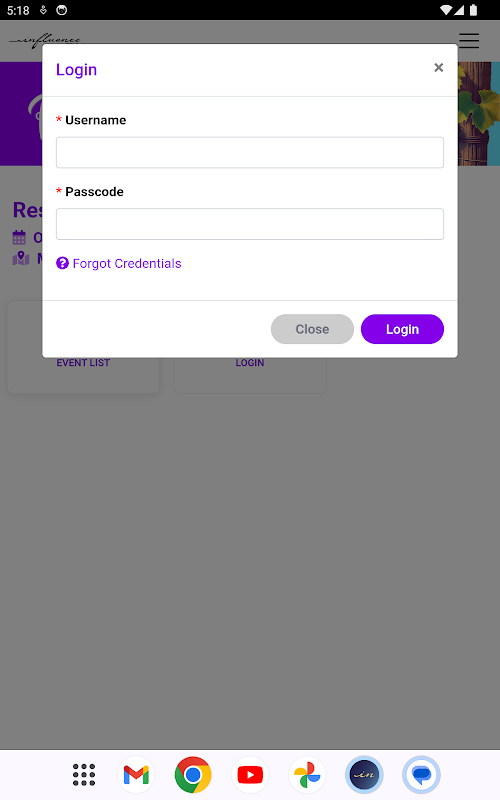 Informacje influence group events APK