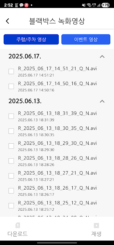 Możesz przeglądać i pobierać nagrania zarejestrowane w trybie jazdy i parkowania.