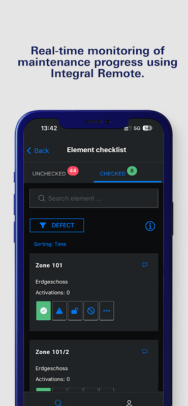 * Wsparcie dla testowania alarmów przeciwpożarowych: Aplikacja Integral Service prowadzi Cię przez cały proces konserwacji systemu sygnalizacji pożaru Schrack Seconet za pomocą uporządkowanej listy kontrolnej.