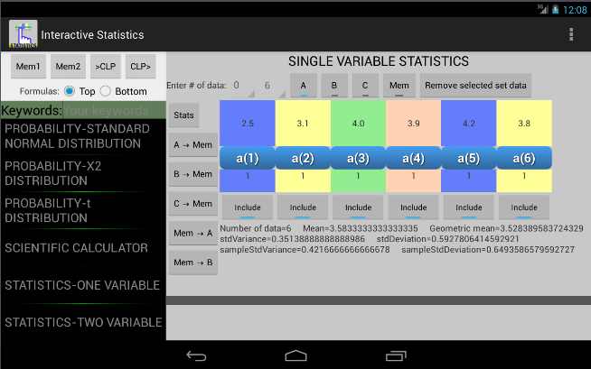 "Interactive Statistics PRO" or simply statistics calculator is ideal for students and graduates, you will find a variety of useful tools for statistics calculus and you can enter a value by touch, the interactive feature make it easy to avoid typing or human errors.
