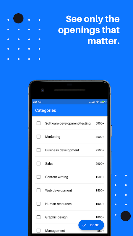 Aplikacja Intern Bit pomaga uczniom znaleźć i ubiegać się o semestralne i letnie staże w najlepszych firmach w Indiach i Stanach Zjednoczonych. Aplikacja zawiera kolekcję starannie dobranych staży największych marek, takich jak Amazon, Intel itp. Abyś mógł poświęcić więcej czasu na budowanie kariery, a mniej na szukanie świetnych staży.