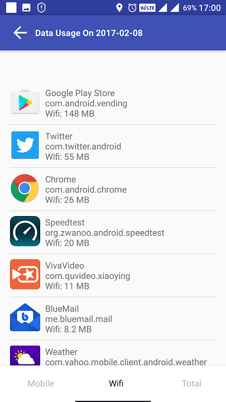 "Data Usage Monitor" app allows you to track your daily internet data usage on mobile Internet network(4G/3G/2G) and wifi and buy your internet plans accordingly.