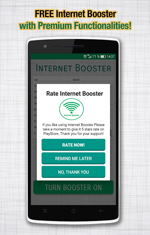 Internet Speed Booster Prank application is intended to simulate improving your internet speed, which is determined by your Internet Service Provider.