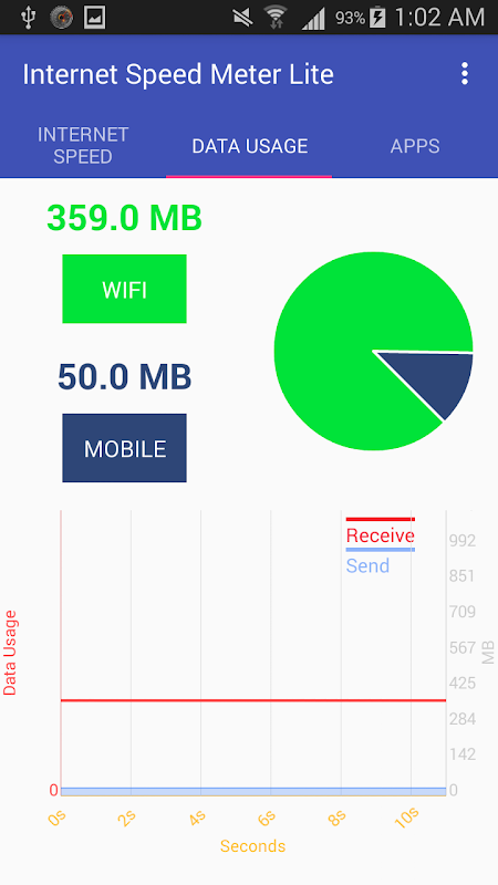 Internet Speed Meter displays your internet speed in status bar and shows the amount of data used in notification pane.