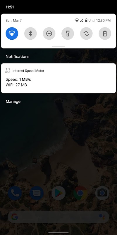 This provides and easy way to monitor your network usage and speed throughout the day without needing to open a separate app. Additionally the notification area shows a carefully designed notification that takes minimal space and attention so that it doesn't come in your way ever.